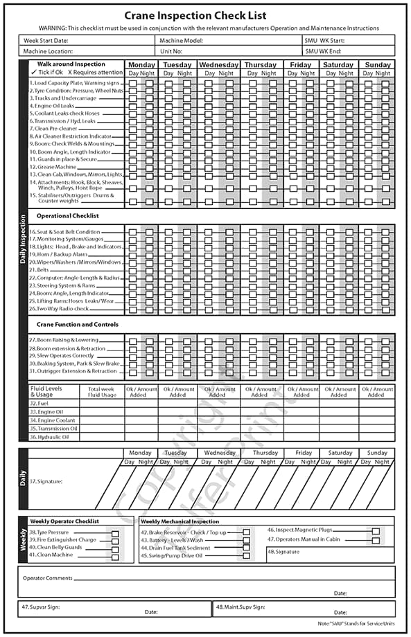 Protect your team and meet your WHS obligations with this pre-printed A5 elevated work platform (EWP) pre-start checklist book. Suitable for scissor lifts, boom lifts, cherry pickers and self-propelled EWPs, this book guides operators through thorough daily safety inspections before the platform is used.