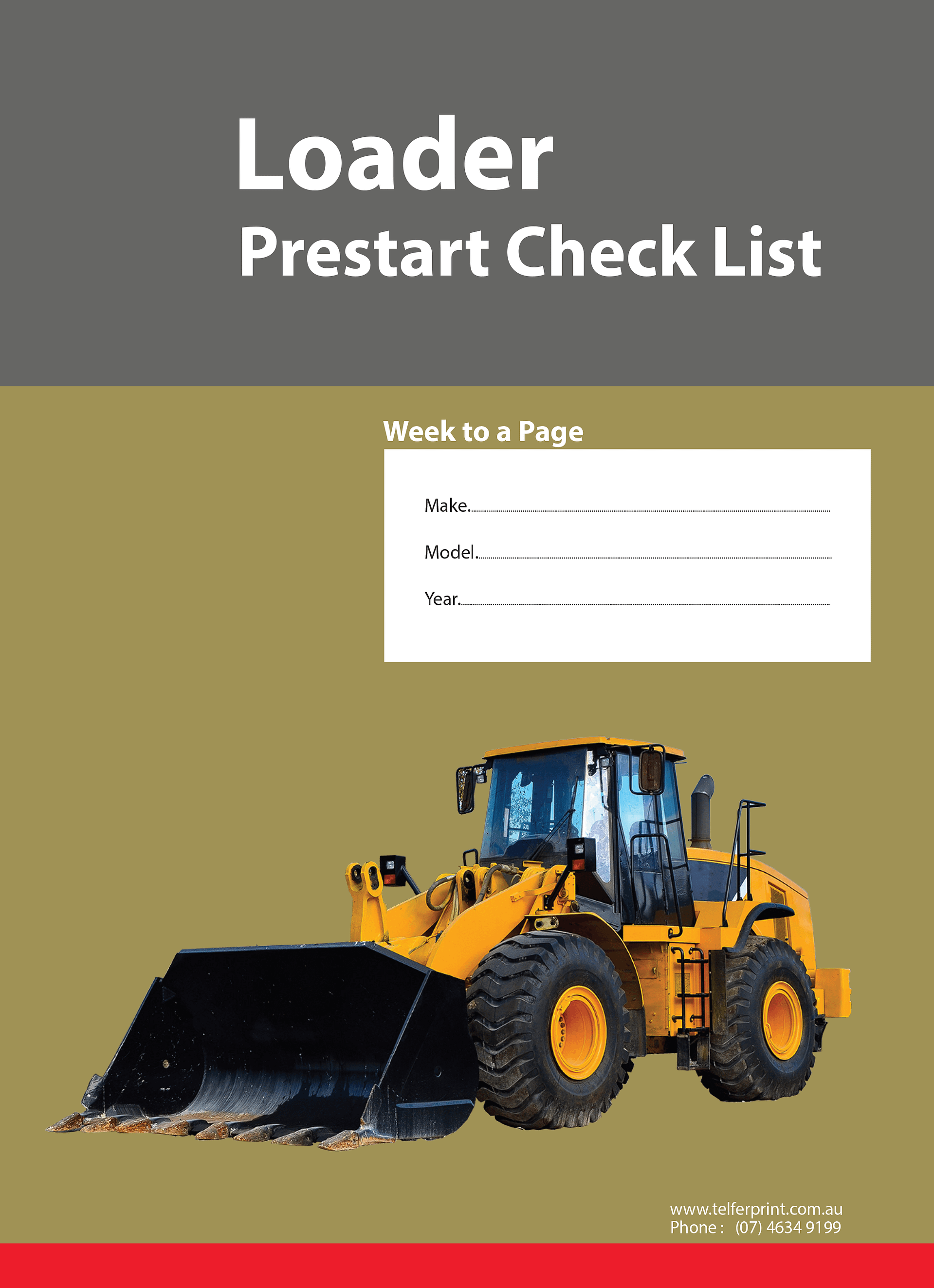 Keep tipper truck operations safe and compliant with this pre-printed A4 pre-start safety check book. Each weekly form covers daily inspections of the truck chassis, tipping body, hydraulics, brakes, lights and safety equipment, with space for the operator to sign off each day.