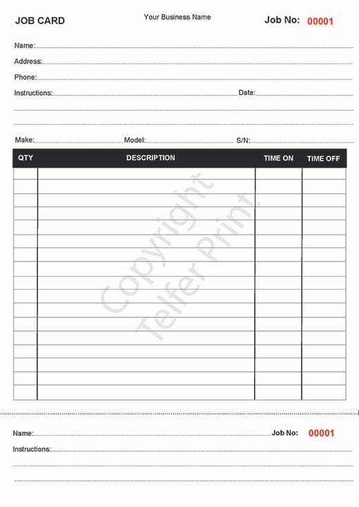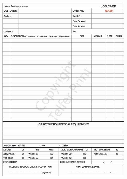 • Print type: NCR carbonless duplicate or triplicate